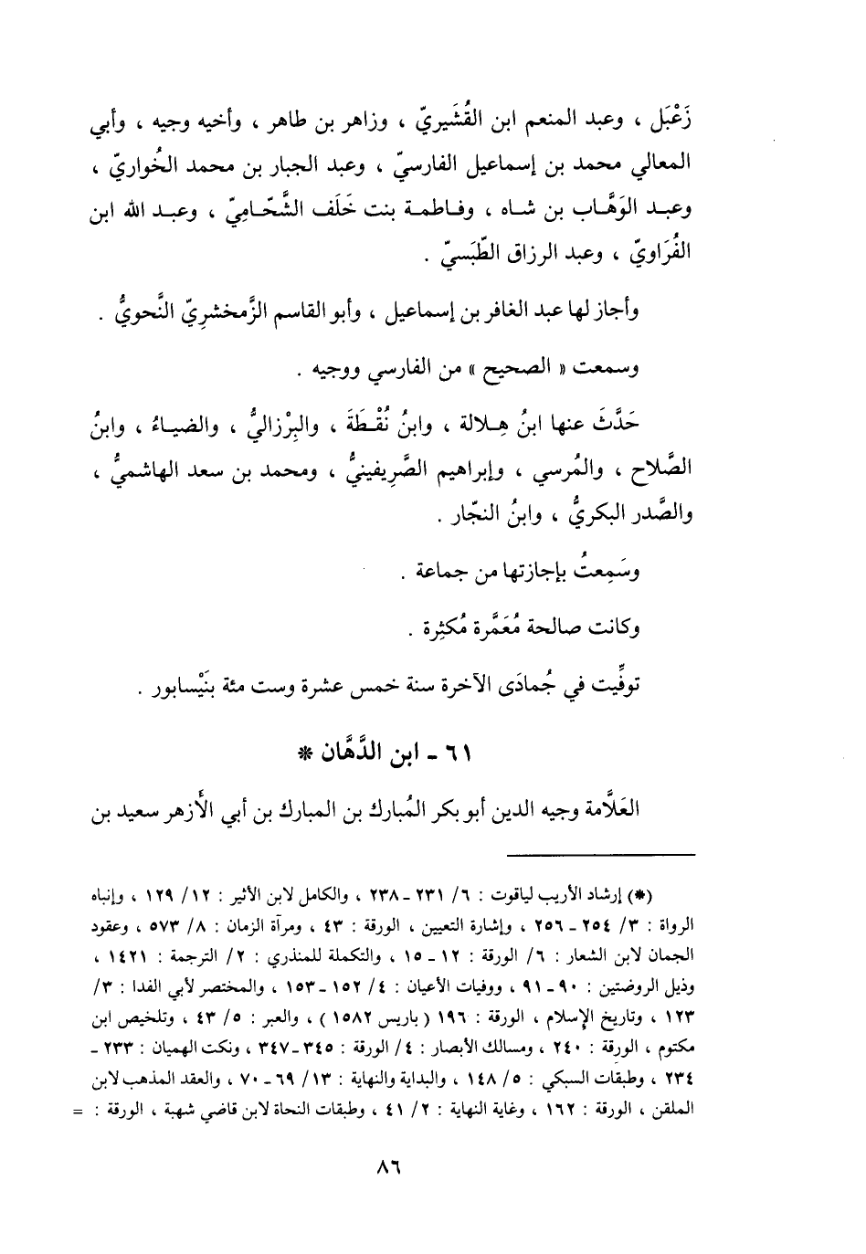 61 - ابْنُ الدَّهَّانِ المُبَارَكُ بنُ المُبَارَكِ بنِ سَعِيْدٍ الوَاسِطِيُّ *