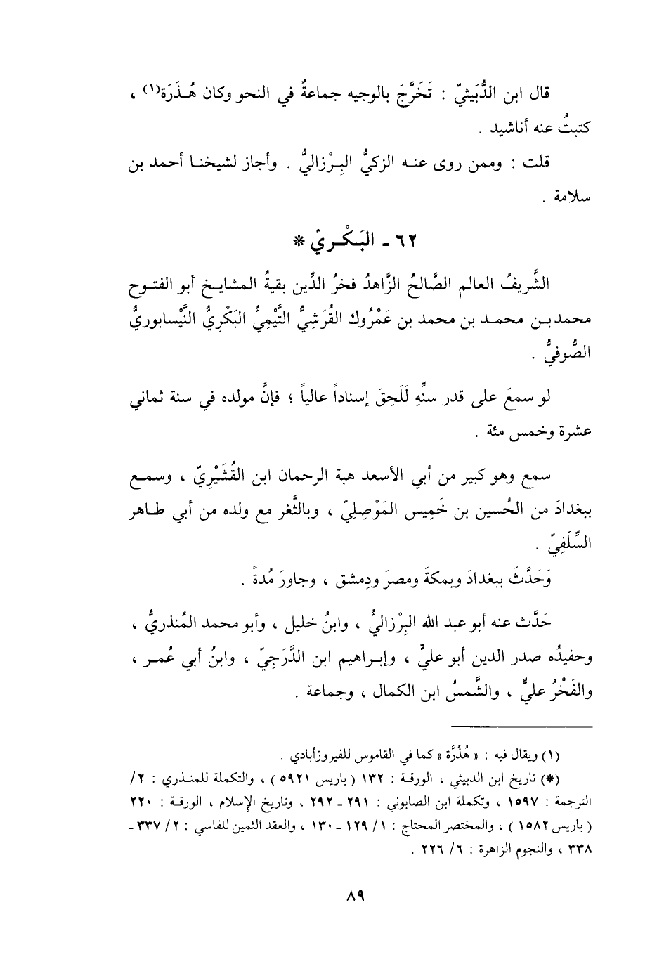 62 - البَكْرِيُّ أَبُو الفُتُوْحِ مُحَمَّدُ بنُ مُحَمَّدِ بنِ مُحَمَّدٍ *