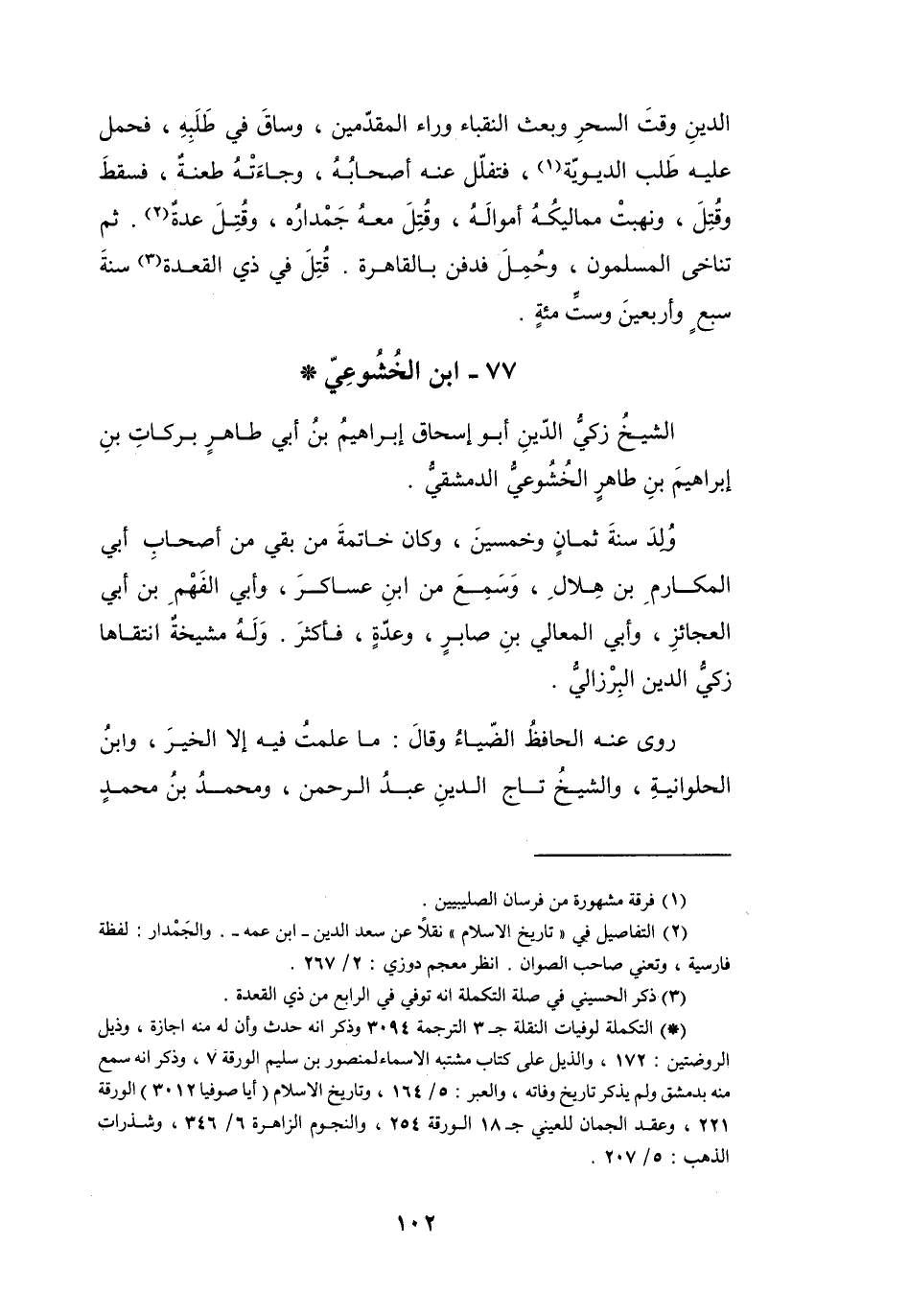 77 - ابْنُ الخُشُوْعِيِّ أَبُو إِسْحَاقَ إِبْرَاهِيْمُ بنُ بَرَكَاتِ بنِ إِبْرَاهِيْمَ *
