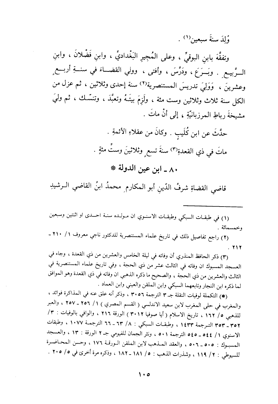 80 - ابْنُ عَيْنِ الدَّوْلَةِ مُحَمَّدُ بنُ عَبْدِ اللهِ بنِ الحَسَنِ الإِسْكَنْدَرَانِيُّ *