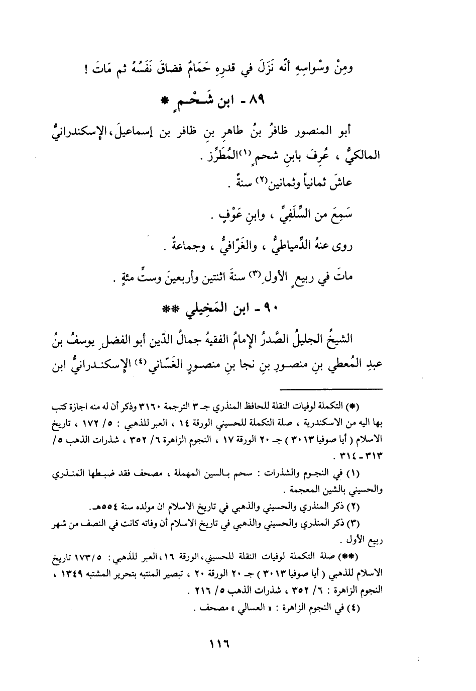 (1) في النجوم والشذارت: سحم بالسين المهملة، مصحف فقد ضبطها المنذري والحسيني باالشين المعجمة.