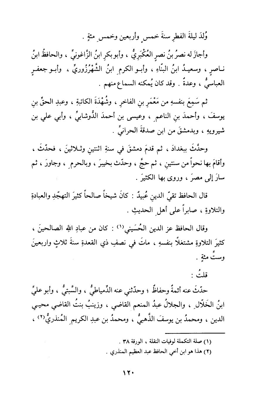 (2) هذا هو ابن أخي الحافظ عبد العظيم المنذري.
