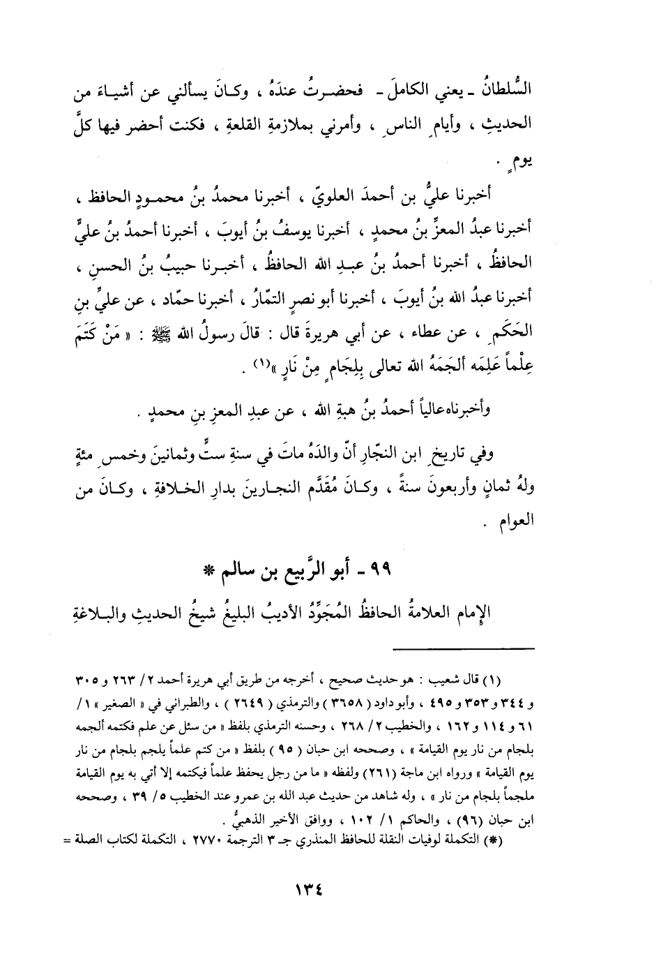 99 - أَبُو الرَّبِيْعِ بنُ سَالِمٍ سُلَيْمَانُ بنُ مُوْسَى بنِ سَالِمٍ الحِمْيَرِيُّ *