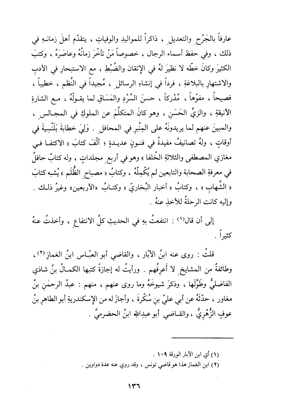 (2) ابن الغماز هذا هو قاضي تونس، وقد روي عنه عدة دواوين.