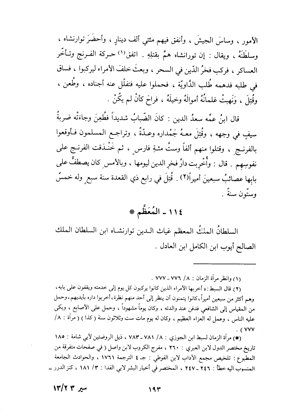 114 - المُعَظَّمُ تُوْرَانْشَاه بنُ أَيُّوْبَ ابْنِ الكَامِلِ ابْنِ العَادِلِ *