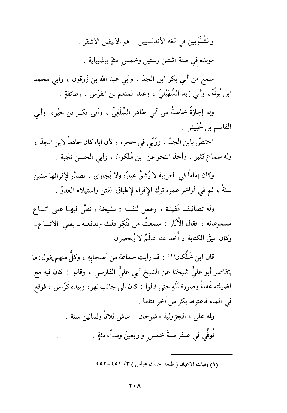 (1) وفيات الأعيان (طبعة احسان عباس) 3 / 451 - 452.