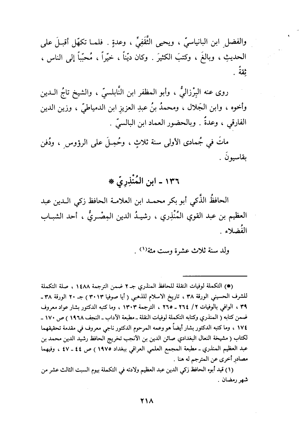 (*) التكملة لوفيات النقلة للحافظ المنذري ج 2 ضمن الترجمة 1488، صلة التكملة للشرف الحسيني الورقة 38، تاريخ الإسلام للذهبي (أيا صوفيا 3013) ج 20 الورقة 38 - 39، الوافي بالوفيات 2 / 264 - 265، الترجمة 1303، وما كتبه الدكتور بشار عواد معروف ضمن كتابه (المنذري وكتابه التكملة لوفيات النقلة - مطبعة الآداب - النجف 1968) ص 170 174، وما كتبه الدكتور بشار أيضا هو وعمه المرحوم الدكتور ناجي معروف في مقدمة تحقيقهما لكتاب (مشيخة النعال البغدادي صائن الدين بن الانجب تخريج الحافظ رشيد الدين محمد بن عبد العظيم المنذري - مطبعة المجمع العلمي العراقي ببغداد 1975) ص 44 - 47، وفيهما مصادر أخرى عن المترجم له هنا.