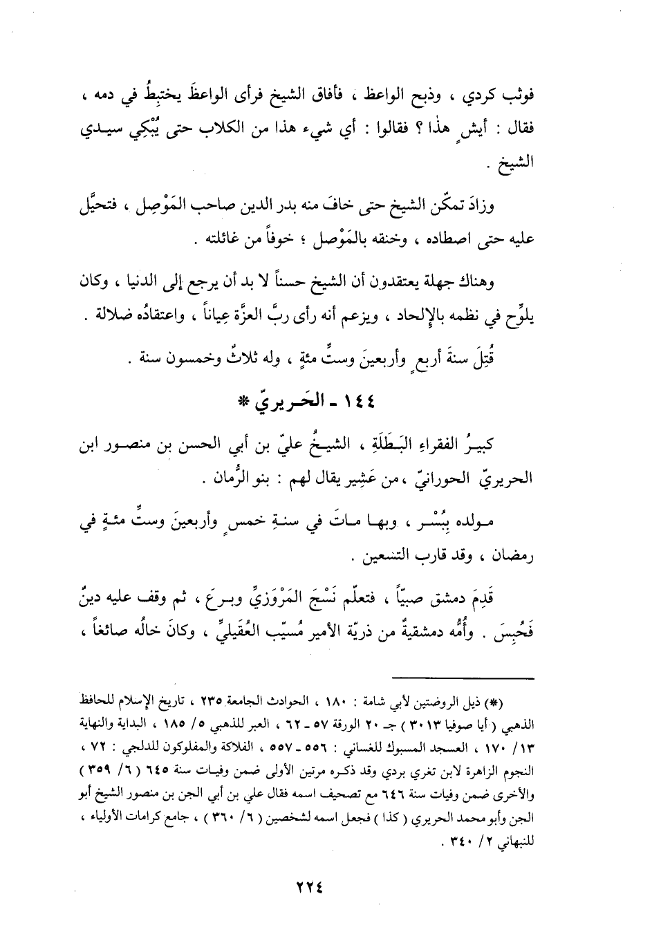 144 - الحَرِيْرِيُّ عَلِيُّ بنُ أَبِي الحَسَنِ بنِ مَنْصُوْرٍ الحَوْرَانِيُّ *