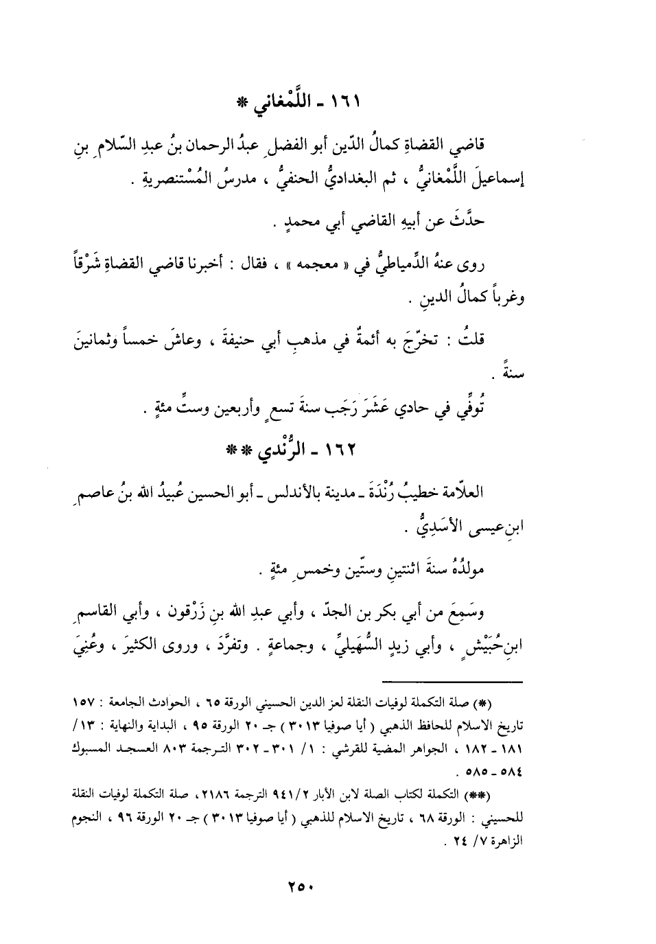 161 - اللَّمْغَانِيُّ عَبْدُ الرَّحْمَانِ بنُ عَبْدِ السَّلاَمِ بنِ إِسْمَاعِيْلَ *