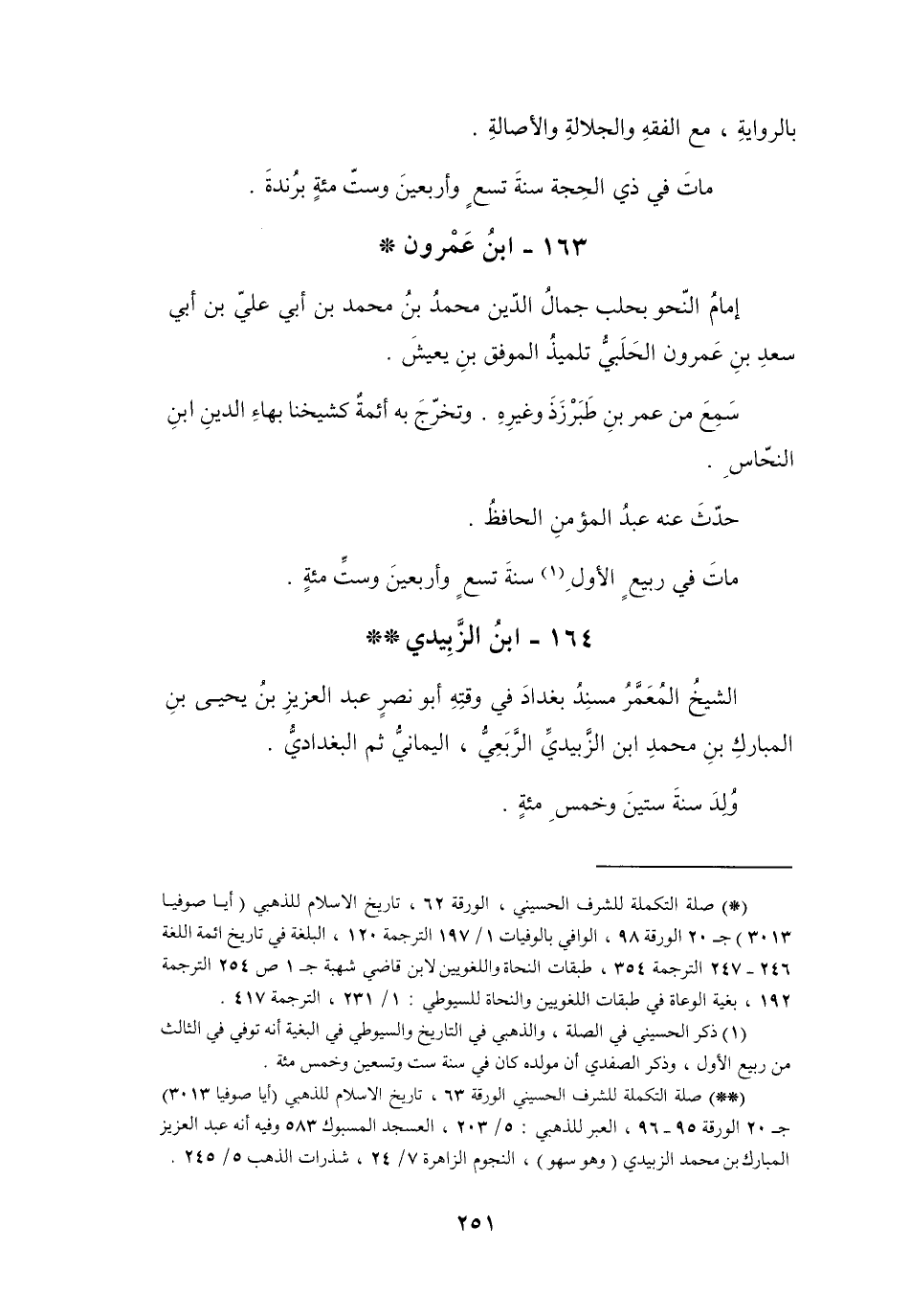 (1) ذكر الحسيني في الصلة، والذهبي في التاريخ والسيوطي في البغية أنه توفي في الثالث من ربيع الأول، وذكر الصفدي أن مولده كان في سنة ست وتسعين خمس مئة.