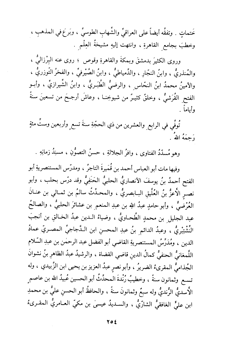 وَهُوَ مُسَدَّد الفَتَاوى، وَافِرُ الجَلاَلَةِ، حَسَنُ التَّصَوُّنِ، مُسْنَدُ زَمَانِه.