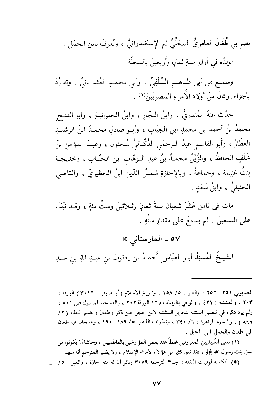 57 - المَارِستَانِيُّ أَبُو العَبَّاسِ أَحْمَدُ بنُ يَعْقُوْبَ بنِ عَبْدِ اللهِ البَغْدَادِيُّ *
