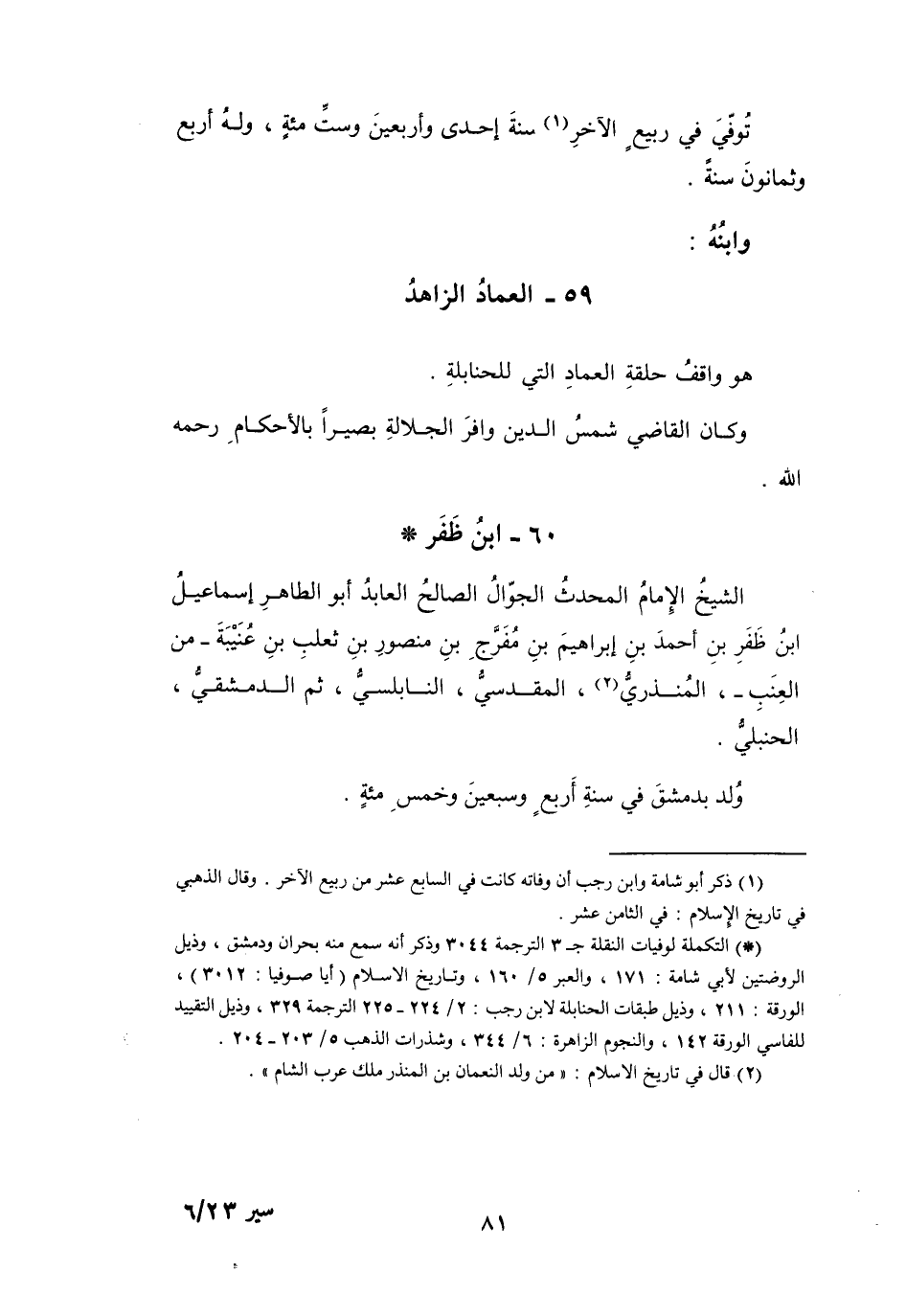 (1) ذكر أبو شامة وابن رجب أن وفاته كانت في السابع عشر من ربيع الآخر. وقال الذهبي في تاريخ الإسلام: في الثامن عشر.