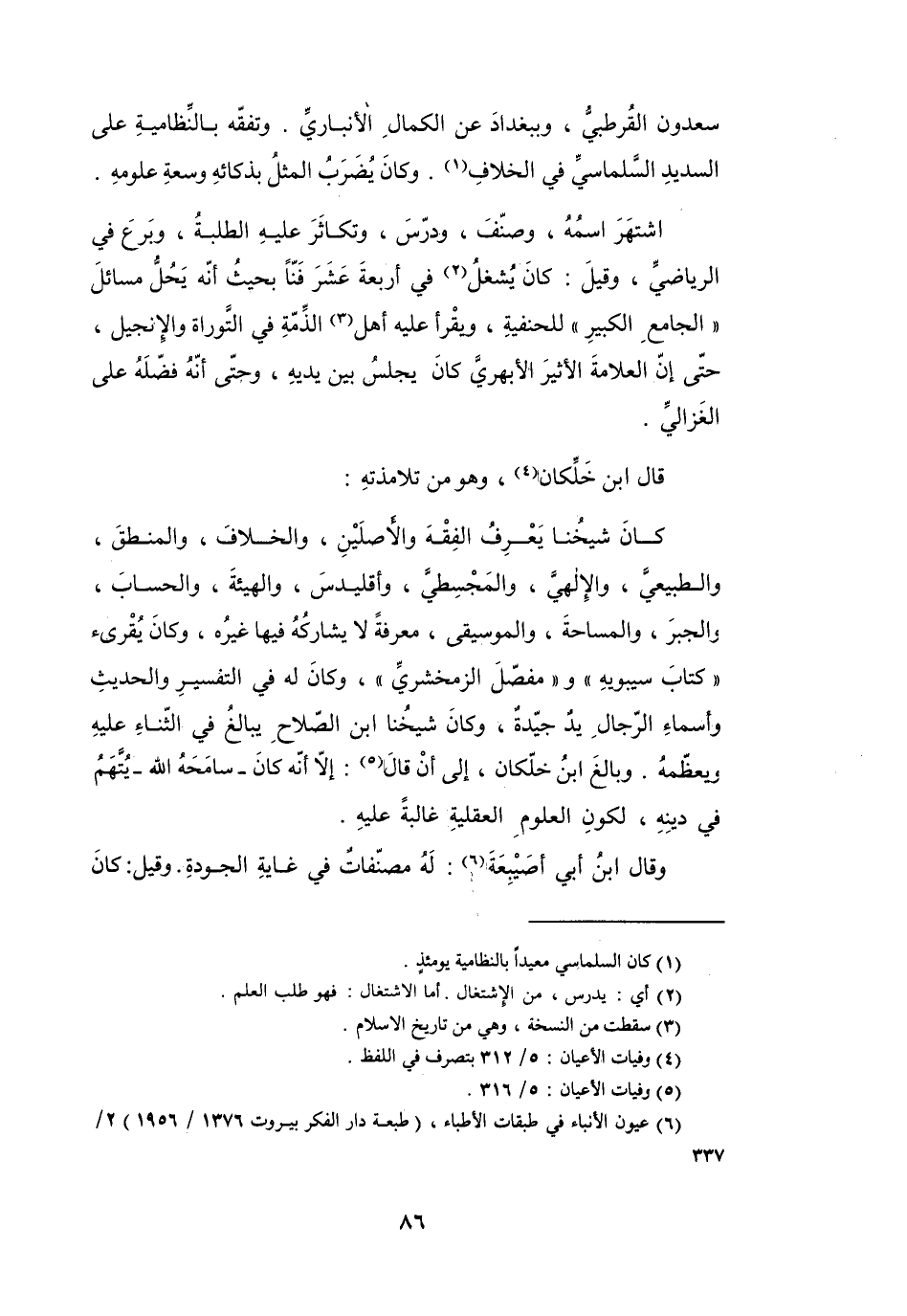 (6) عيون الانباء في طبقات الاطباء، (طبعة دار الفكر بيروت 1376 / 1956) 2 / 337.