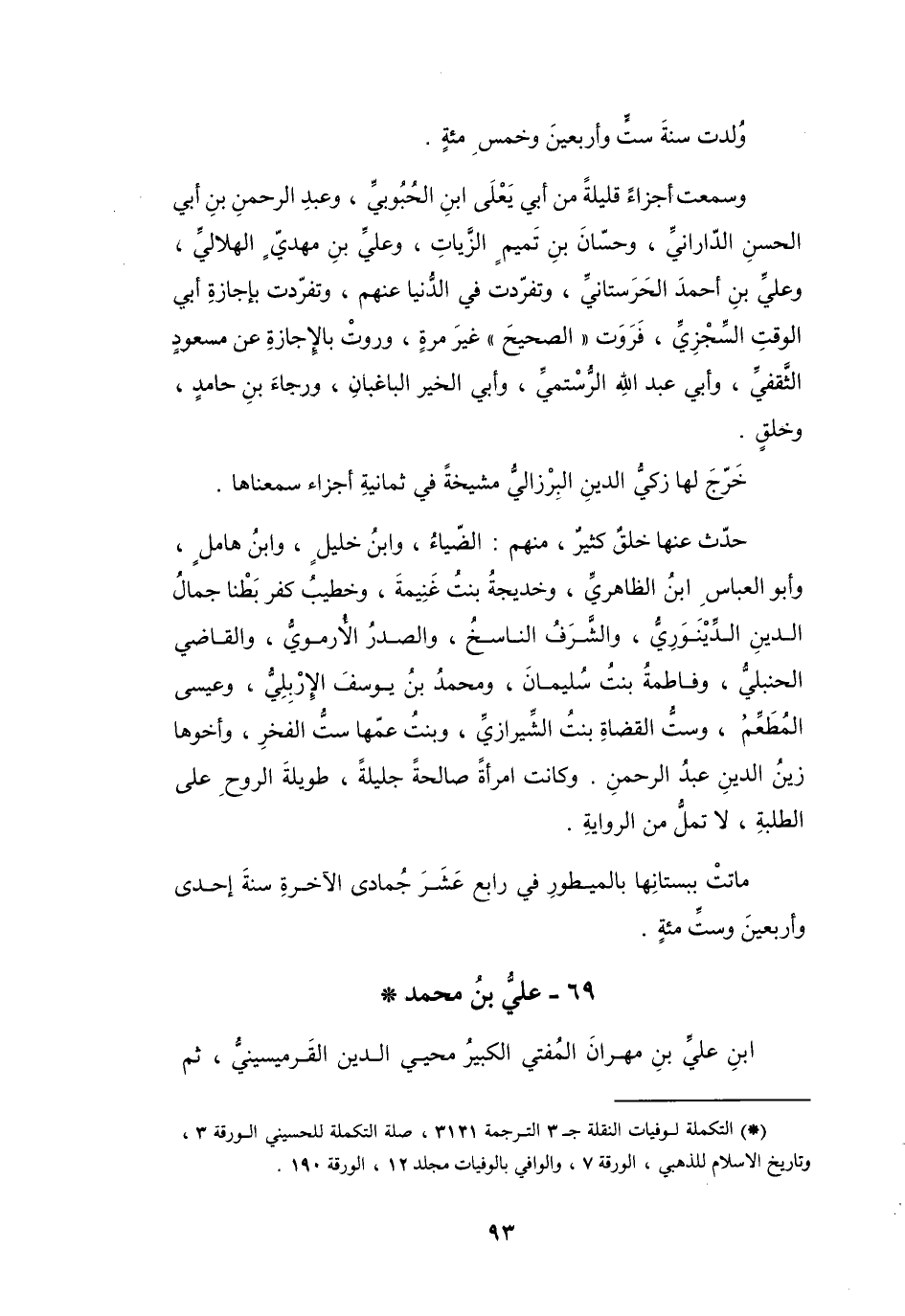(*) التكملة لوفيات النقلة ج 3 الترجمة 3121، صلة التكملة للحسيني الورقة 3، وتاريخ الإسلام للذهبي، الورقة 7، والوافي بالوفيات مجلد 12، الورقة 190.