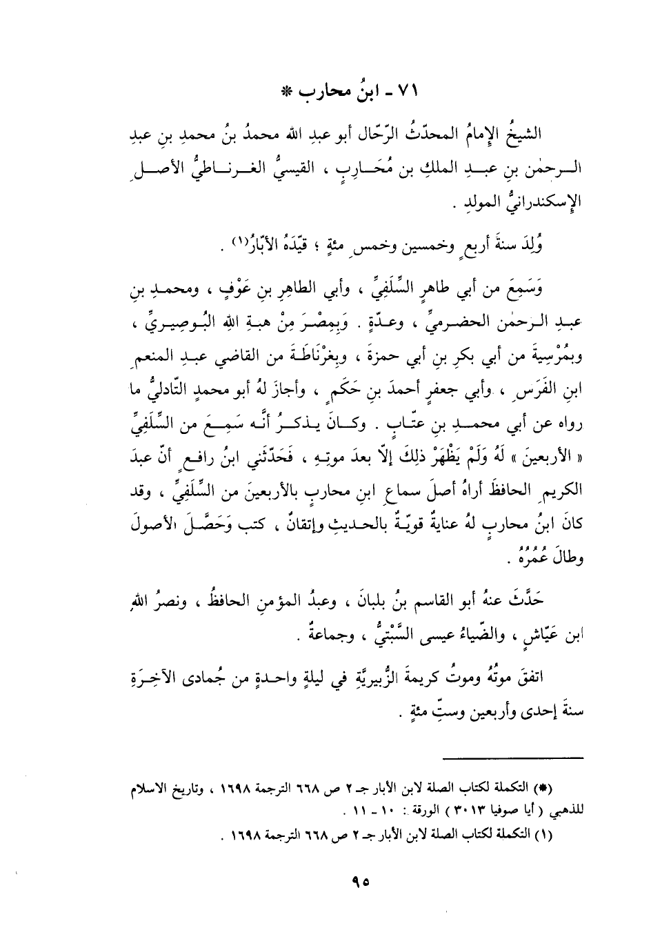 (*) التكملة لكتاب الصلة لابن الابار ج 2 ص 668 الترجمة 1698، وتاريخ الإسلام للذهبي (أيا صوفيا 3013) الورقة: 10 - 11.