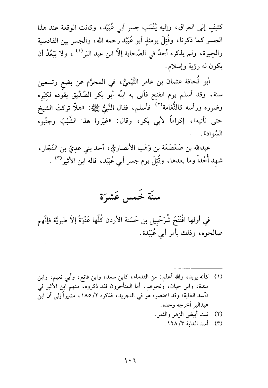 وإليه ينسب جسر أبي عبيد، وكانت الواقعة عند هذا الجسر كما ذكرنا، وقتل يومئذ أبو عبيد -رحمه الله، والجسر بين القادسية والحيرة، ولم يذكره أحد في الصحابة إلا ابن عبد البر، ولا يبعد أن يكون له رؤية وإسلام.