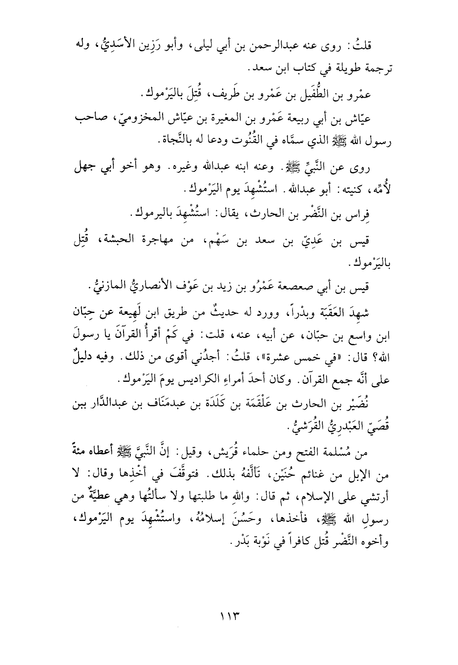 من مسلمة الفتح ومن حلماء قريش، وقيل: إن النبي صلى الله عليه وسلم أعطاه مائة من الإبل من غنائم حنين، تألفه بذلك. فتوقف في أخذها وقال: لا أرتشي على الإسلام ثم قال: والله ما طلبتها ولا سألتها وهي عطية من رسول الله صلى الله عليه وسلم، فأخذها، وحسن إسلامه، واستشهد يوم اليرموك، وأخوه النضر قتل كافرا في نوبة بدر.