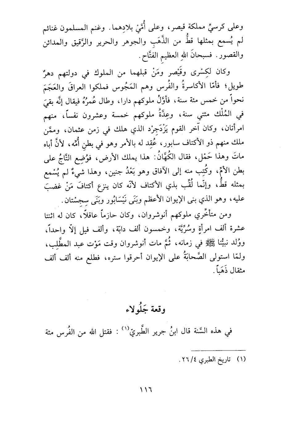في هذه السنة قال ابن جرير الطبري: فقتل الله من الفرس مائة