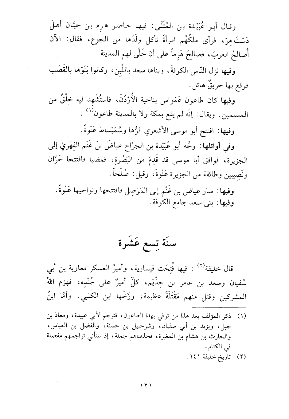 وفي أوئلها: وجه أبو عبيدة بن الجراح عياض بن غنم الفهري إلى الجزيرة، فوافق أبا