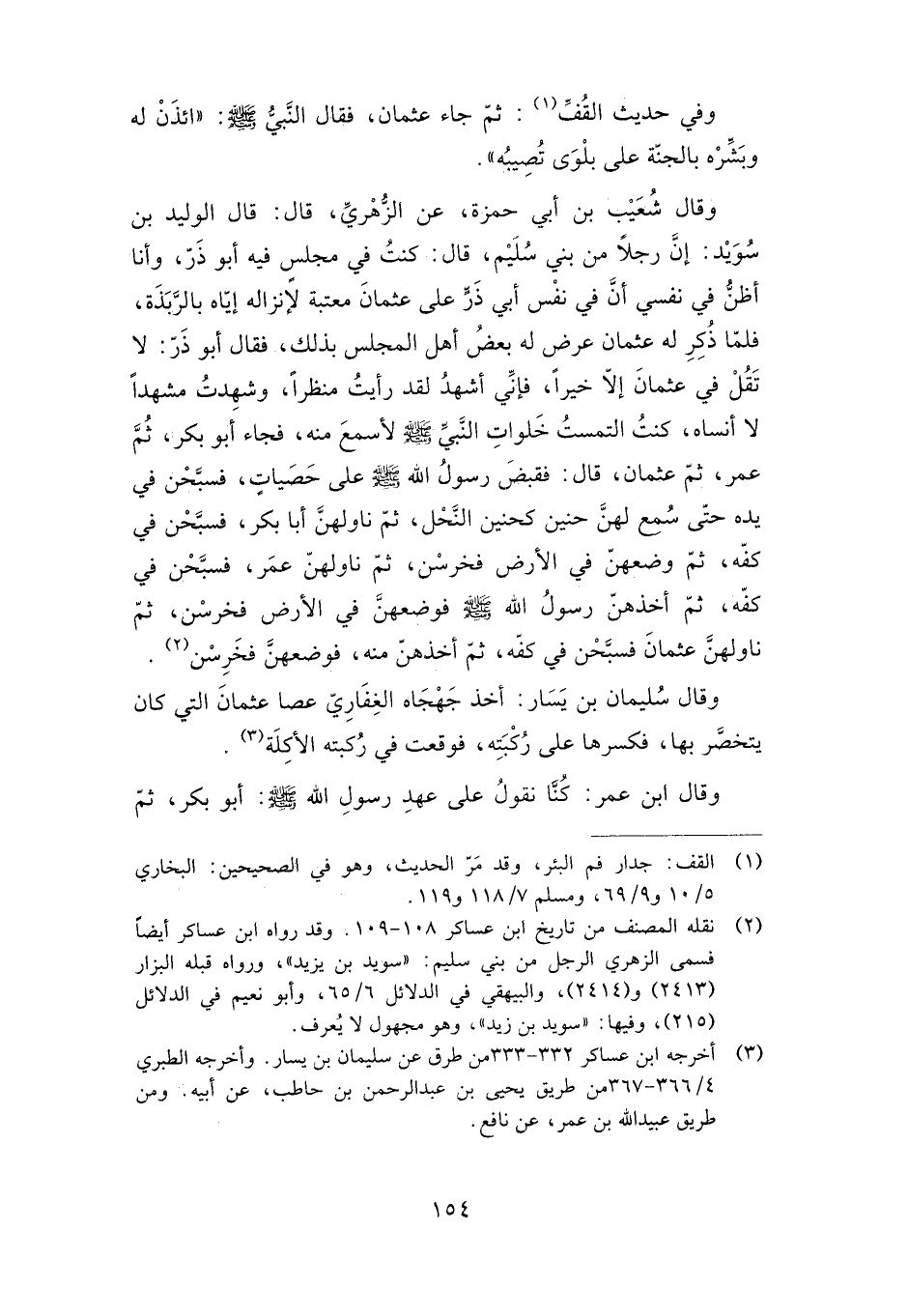 وقال شعيب بن أبي حمزة، عن الزهري، قال: قال الوليد بن سويد: إن رجلا من بني سليم، قال: كنت في مجلس فيه أبو ذر، وأنا أظن في نفسي أن في نفس أبي ذر على عثمان معتبة لإنزاله إياه بالربذة، فلا ذكر له عثمان عرض له بعض أهل المجلس بذلكن فقال أبو ذر: لا تقل في عثمان إلا خيرا، فإني أشهد لقد رأيت منظرا، وشهدت مشهدا لا أنساه، كنت التمست خلوات النبي صلى الله عليه وسلم لأسمع منه، فجاء أبو بكر، ثم