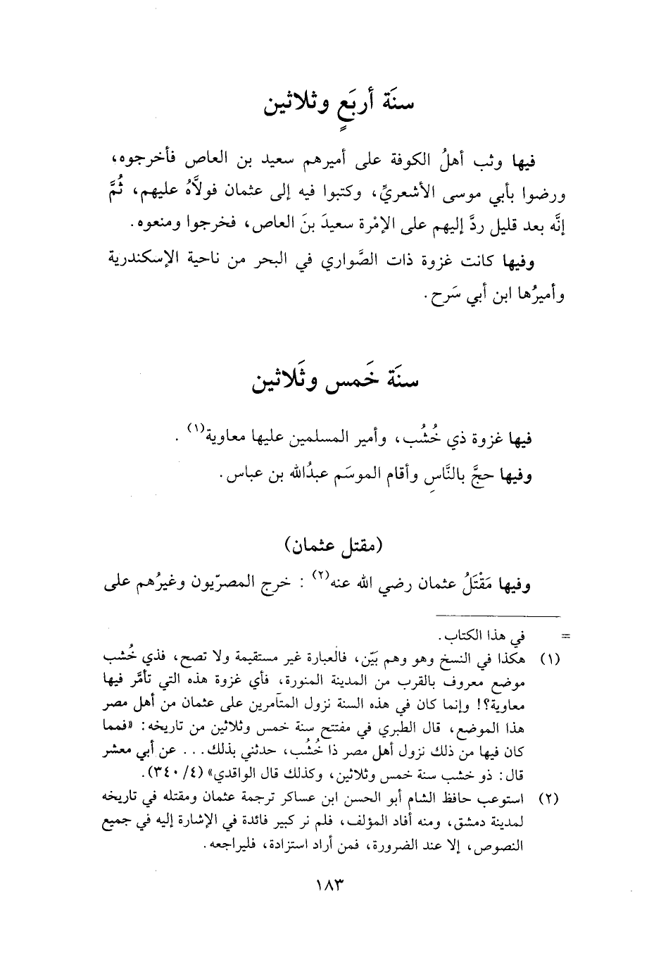 وفيها: مقتل عثمان -رضي الله عنه: خرج المصريون وغيرهم على
