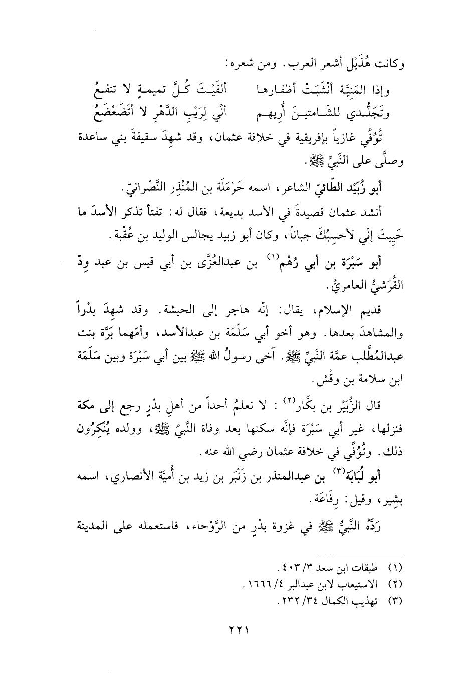 أنشد عثمان قصيدة في الأسد بديعة فقال له: تفتأ تذكر الأسد ما حييت إني لأحسبك جبانا، وكان أبو زبيد يجالس الوليد بن عقبة.
