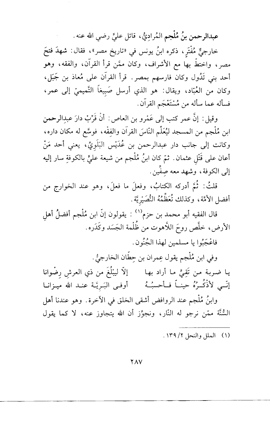 قلت: ثم أدركه الكتاب، وفعل ما فعل، وهو عند الخوارج من أفضل الأمة، وكذلك تعظمه النصيرية.