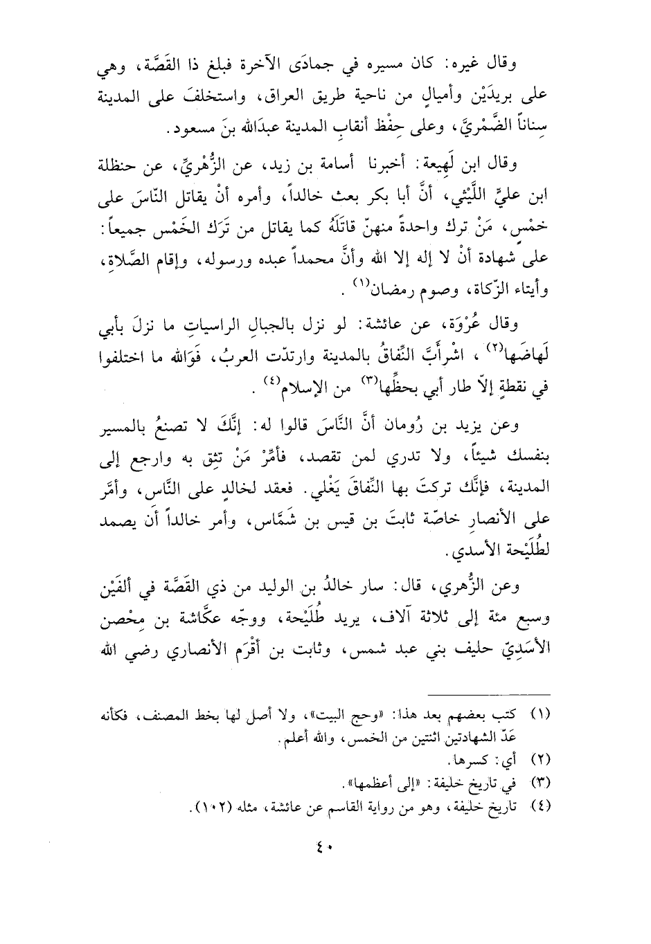 وعن الزهري، قال: سار خالد بن الوليد من ذي القصة في ألفين وسبع مائة إلى ثلاثة آلاف، يريد طليحة، ووجه عكاشة بن محصن الأسدي حليف بني عبد شمس، وثابت بن أقرم الأنصاري -رضي الله