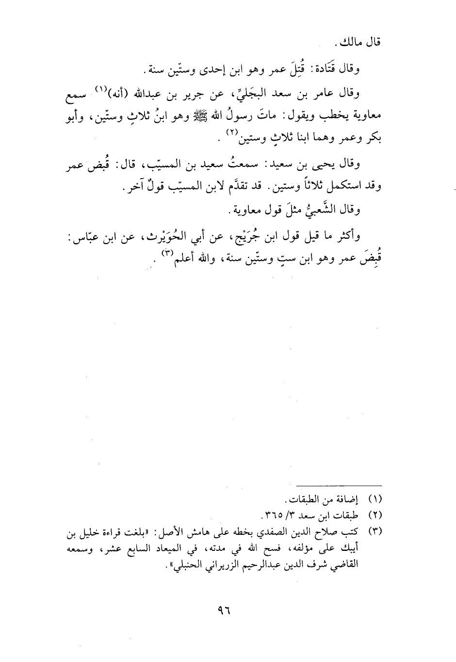 وأكثر ما قيل قول ابن جريج، عن أبي الحويرث، عن ابن عباس: قبض عمر وهو ابن ست وستين سنة، والله أعلم.