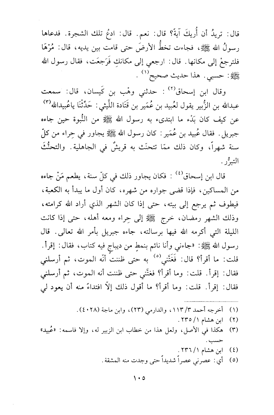وقال ابن إسحاق: حدثني وهب بن كيسان، قال: سمعت عبد الله بن الزبير يقول لعبيد بن عمير بن قتادة الليثي: حدثنا يا عبيد الله عن كيف كان بدء ما ابتدئ به رسول الله صلى الله عليه وسلم من