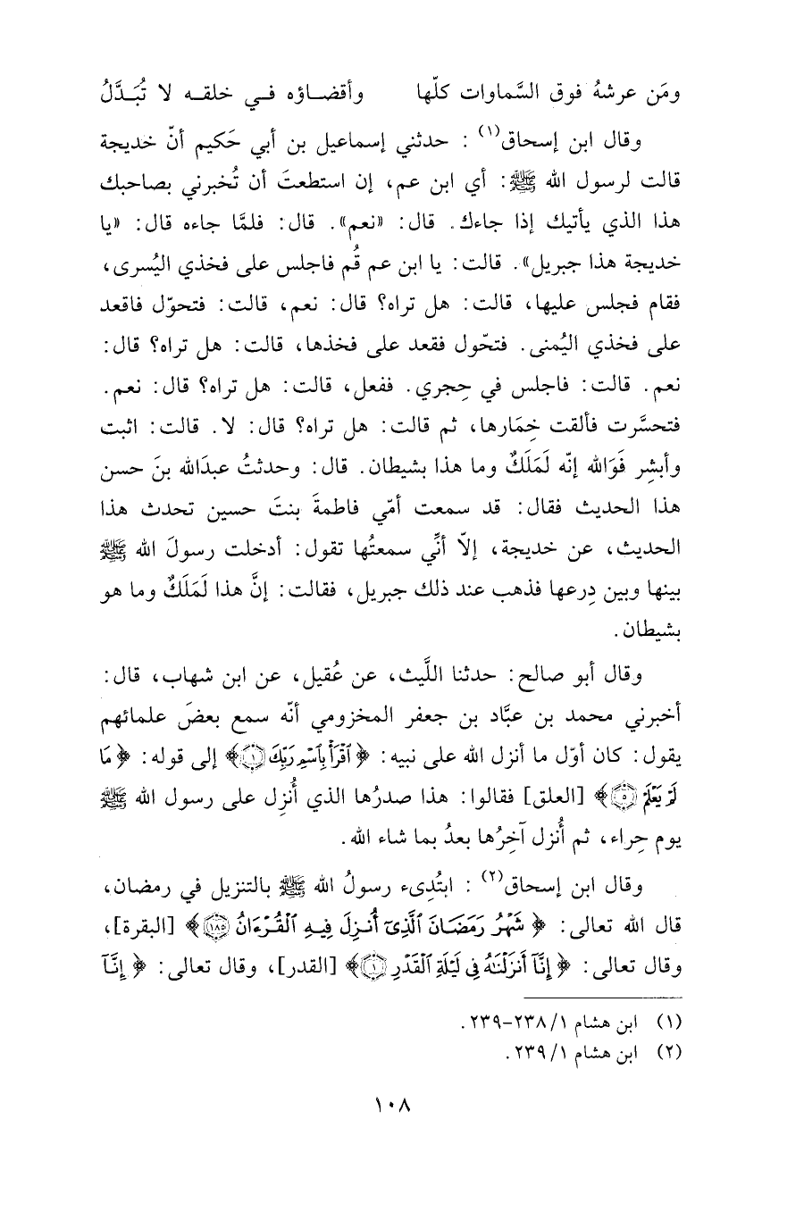 وقال ابن إسحاق: ابتدئ رسول الله صلى الله عليه وسلم بالتنزيل في رمضان، قال الله تعالى: {شَهْرُ رَمَضَانَ الَّذِي أُنْزِلَ فِيهِ الْقُرْآنُ} [القدر: 1] ، وقال تعالى: {إِنَّا