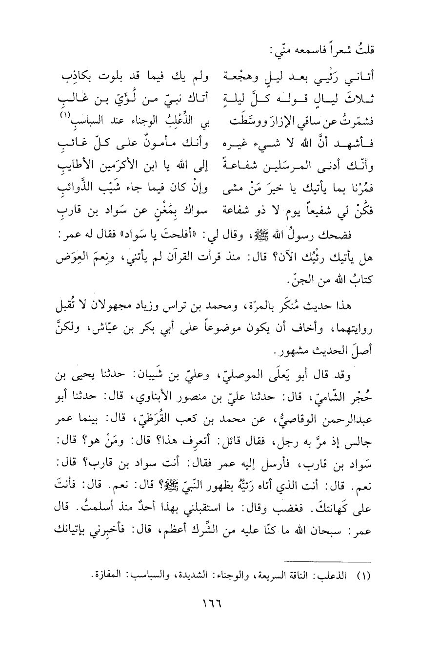 فضحك رسول الله صلى الله عليه وسلم، وقال لي: "أفلحت يا سواد! " فقال له عمر: هل يأتيك رئيك الآن؟ قال: منذ قرأت القرآن لم يأتني، ونعم العوض كتاب الله من الجن.