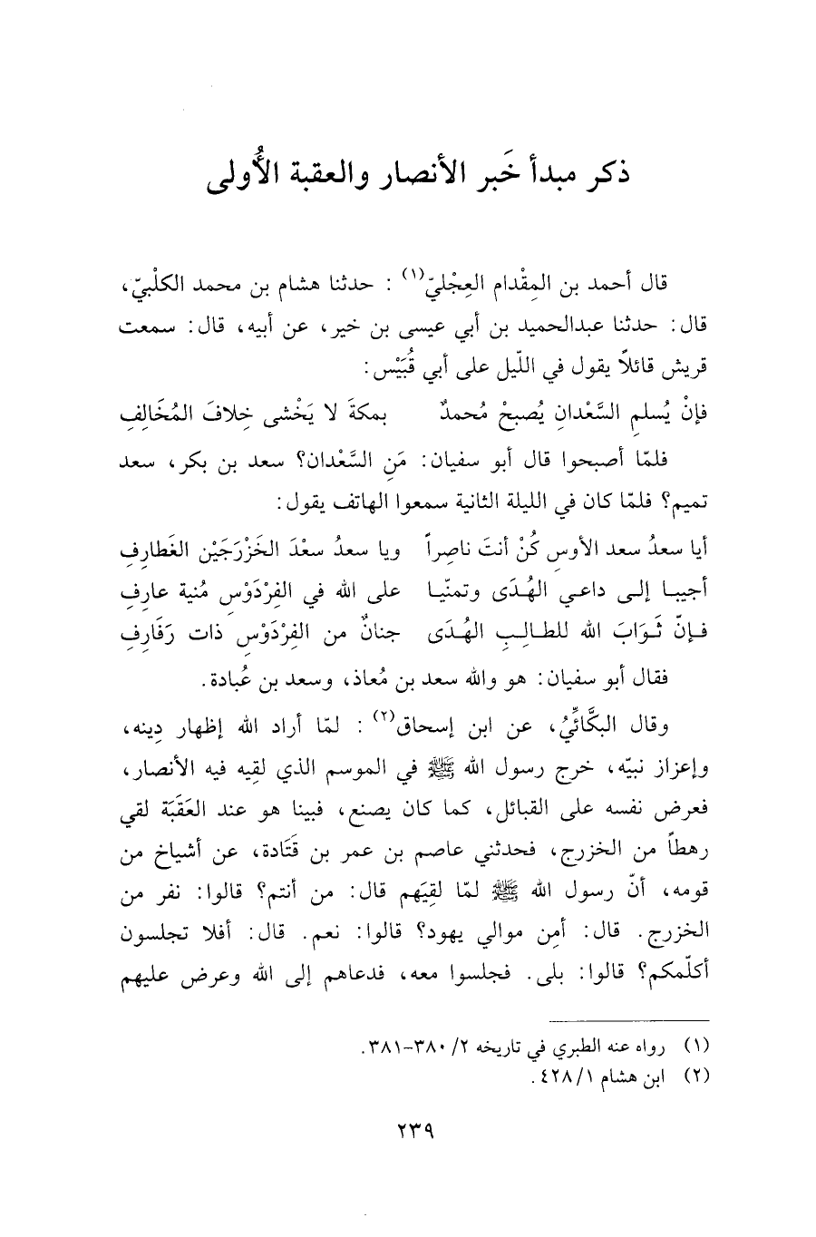 ذكر مبدأ خبر الأنصار والعقبة الأولى: