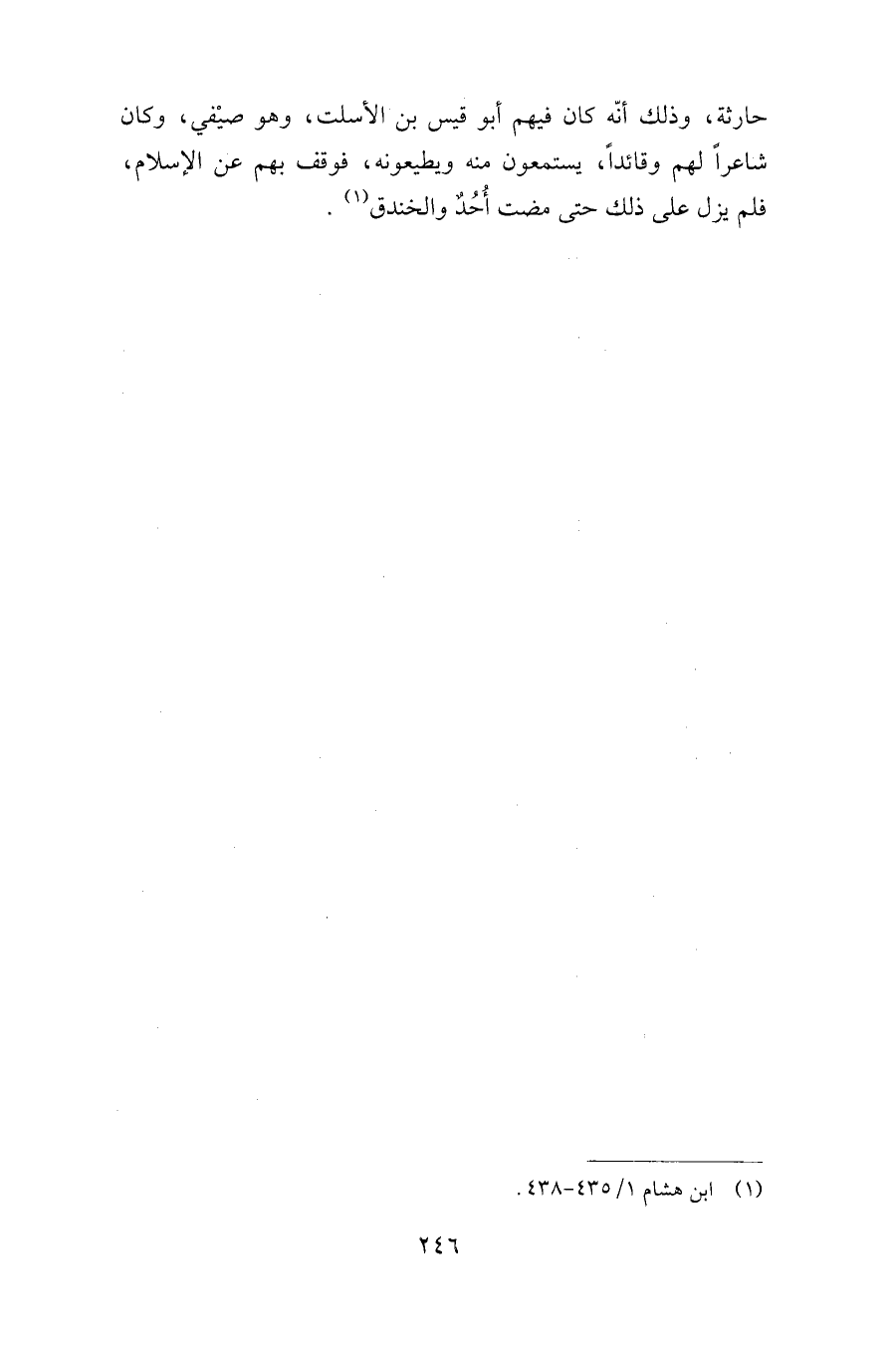 حارثة، وذلك أنه كان فيهم أبو قيس بن الأسلت، وهو صيفي، وكان شاعرا لهم وقائدا، يستمعون منه ويطيعونه فوقف بهم عن الإسلام، فلم يزل على ذلك حتى مضت أحد والخندق.
