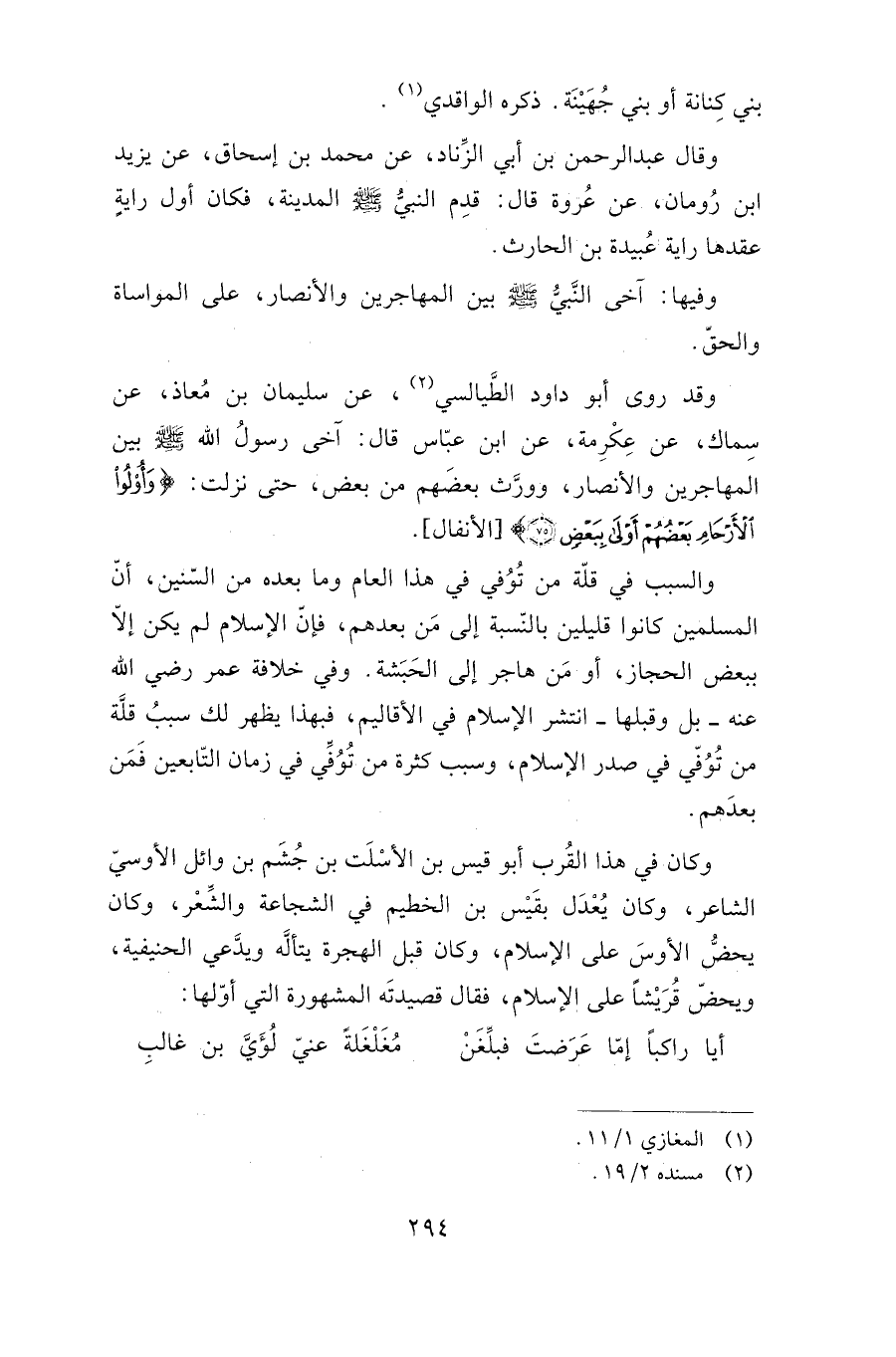 وفيها: آخى النبي صلى الله عليه وسلم بين المهاجرين والأنصار، على المواساة والحق.