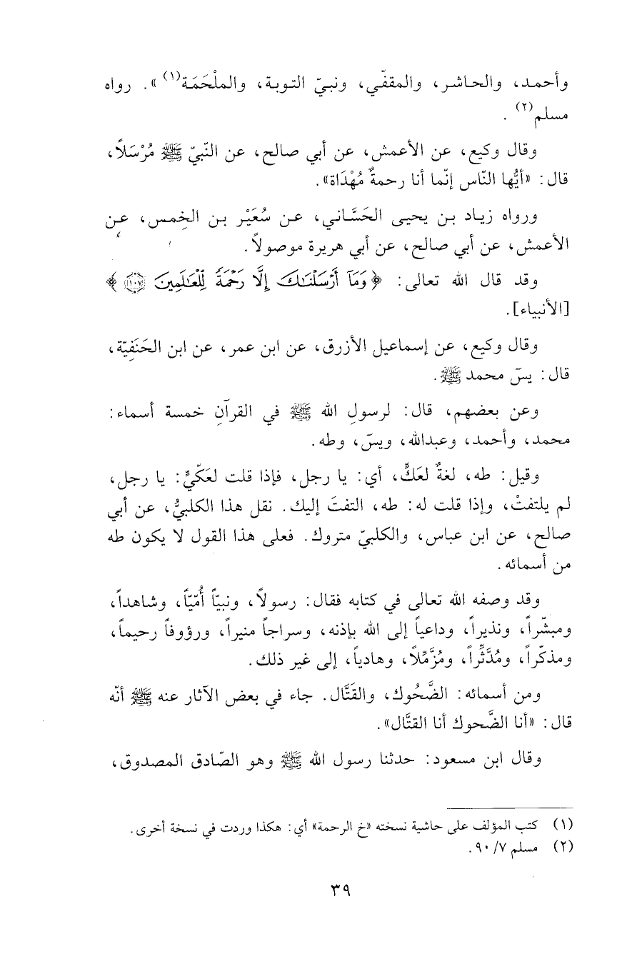 وأحمد، والحاشر، والمقفى، ونبي التوبة، والملحمة" رواه مسلم.