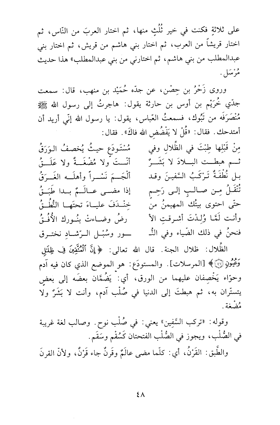اختار بني عبد المطلب من بني هاشم، ثم اختارني من بني عبد المطلب". هذا حديث مرسل.
