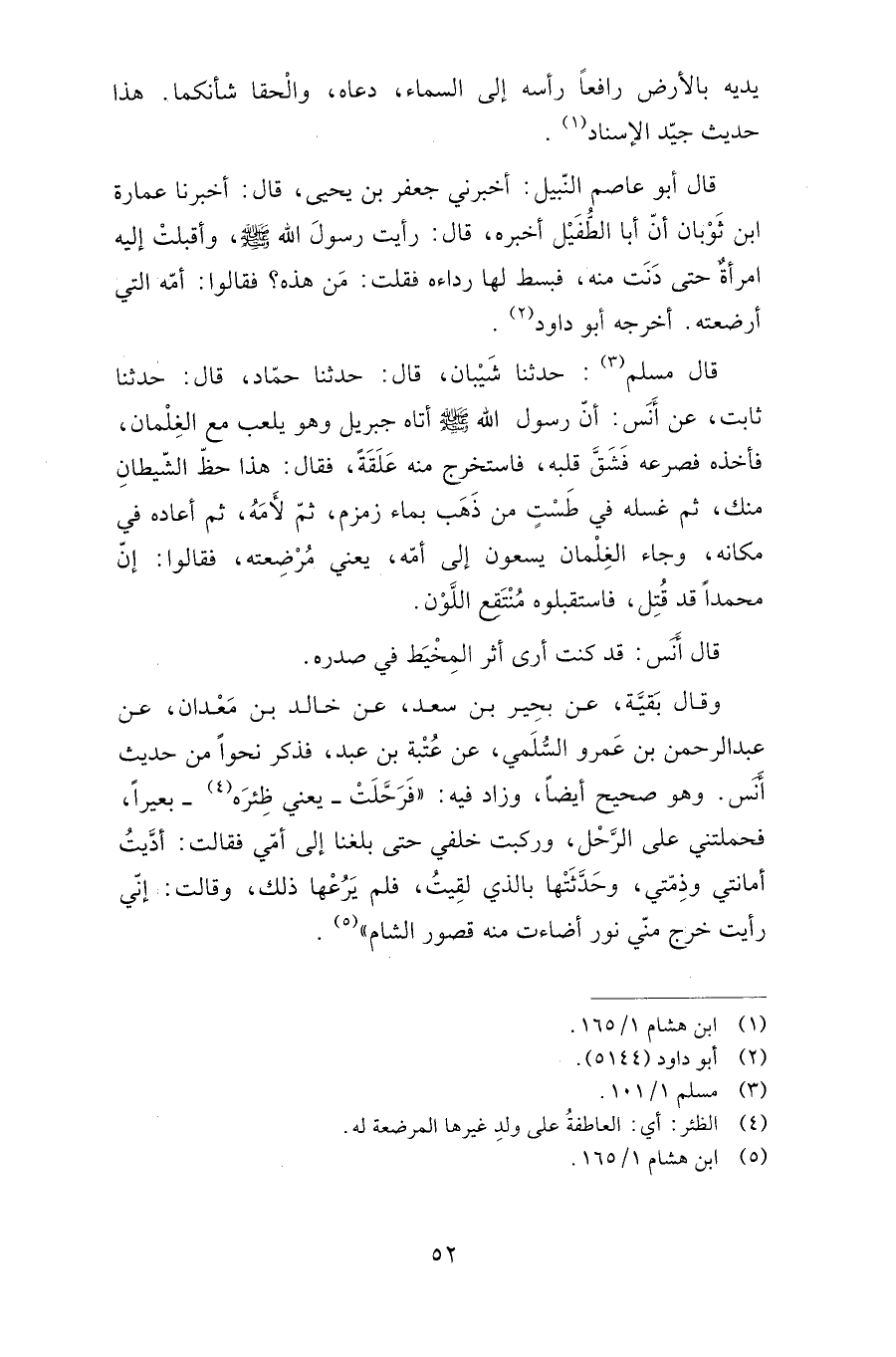 وقال بقية، عن بحير بن سعد، عن خالد بن معدان، عن عبد الرحمن بن عمرو السلمي، عن عتبة بن عبد، فذكر نحوا من حديث أنس. وهو صحيح أيضا، وزاد فيه: "فرحلت -يعني ظئره - بعيرا، فحملتني على الرحل، وركبت خلفي حتى بلغنا إلى أمي فقالت: أديت أمانتي وذمتي، وحدثتها بالذي لقيت، فلم يعرها ذلك، وقالت: إني رأيت خرج مني نور أضاء منه قصور الشام.