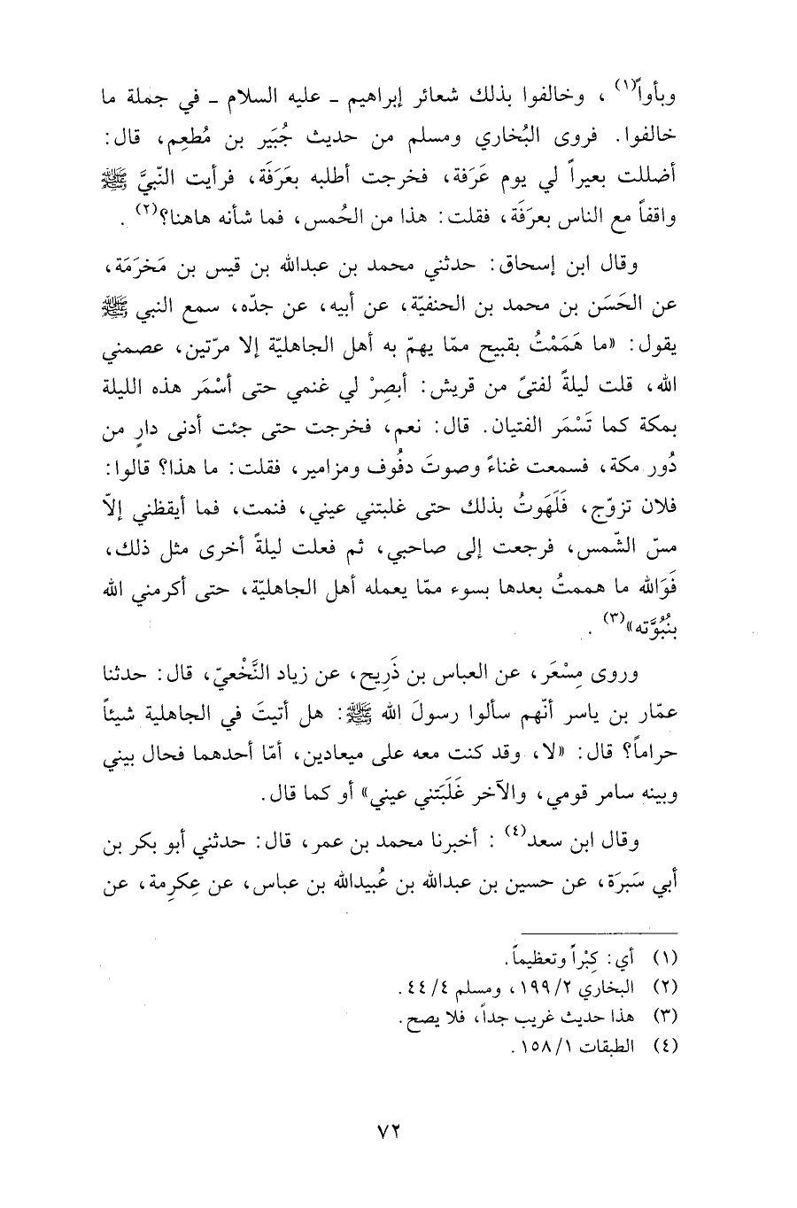 وبأوا، وخالفوا بذلك شعائر إبراهيم عليه السلام في جملة ما خالفوا. فروى البخاري ومسلم من حديث جبير بن مطعم، قال: أضللت بعيرا لي يوم عرفة، فخرجت أطلبه بعرفة، فرأيت النبي صلى الله عليه وسلم واقفا مع الناس بعرفة، فقلت: هذا من الحمس، فما شاء ههنا؟ .
