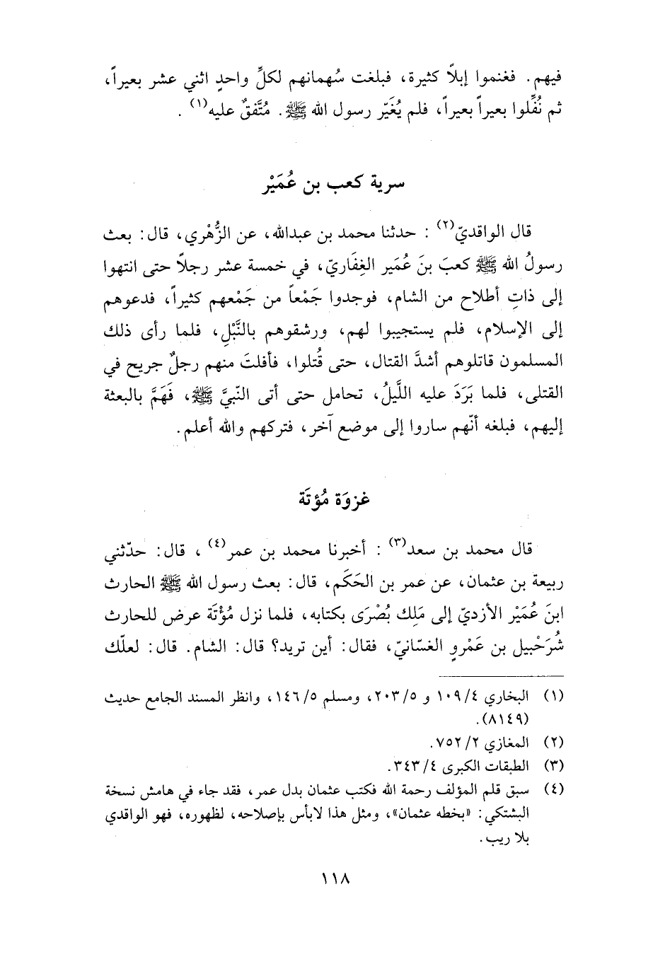 قال محمد بن سعد: أخبرنا محمد بن عمر، قال: حدثني ربيعة بن عثمان، عن عمر بن الحكم، قال: بعث رسول الله صلى الله عليه وسلم الحارث بن عمير الأزدي إلى ملك بصرى بكتابه، فلما نزل مؤتة عرض للحارث شرحبيل بن عمرو الغساني، فقال: أين تريد؟ قال: الشام. قال: لعلك