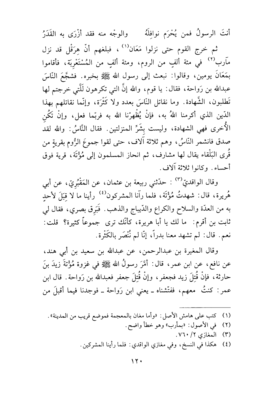 ثم خرج القوم حتى نزلوا معان، فبلغهم أن هرقل قد نزل مآرب في مائة ألف من الروم، ومائة ألف من المستعربة، فأقاموا بمعان يومين، وقالوا: نبعث إلى رسول الله صلى الله عليه وسلم بخبره.