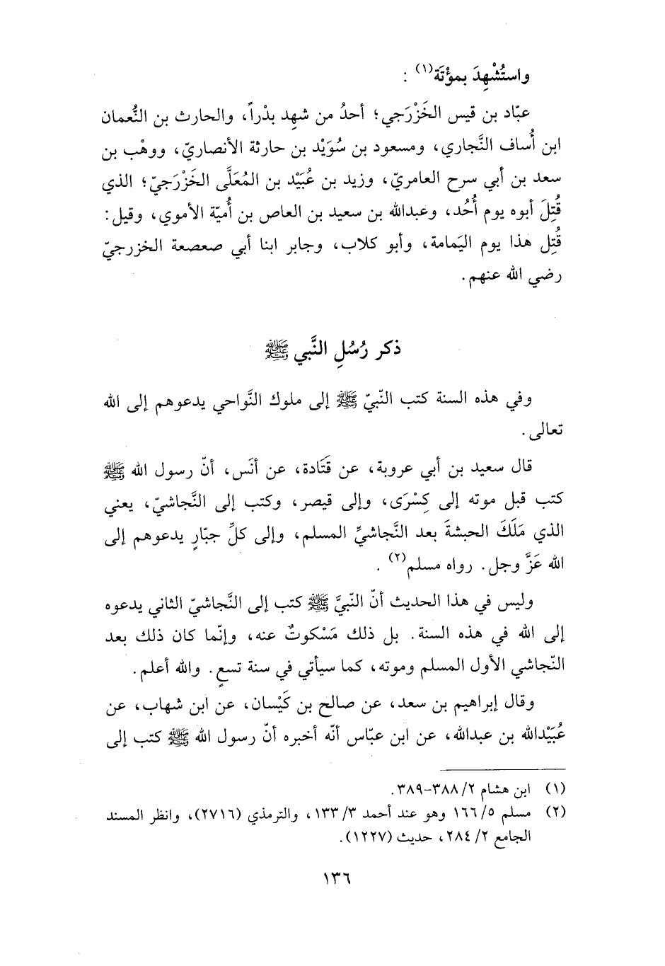 قال سعيد بن أبي عروبة، عن قتادة، عن أنس، أن رسول الله صلى الله عليه وسلم كتب قبل موته إلى كسرى، وإلى قيصر، وكتب إلى النجاشي، يعني الذي ملك الحبشة بعد النجاشي المسلم، وإلى كل جبار يدعوهم إلى الله، عز وجل. رواه مسلم.