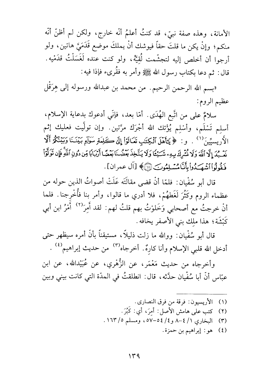 "بسم الله الرحمن الرحيم. من محمد بن عبد الله ورسوله إلى هرقل عظيم الروم: