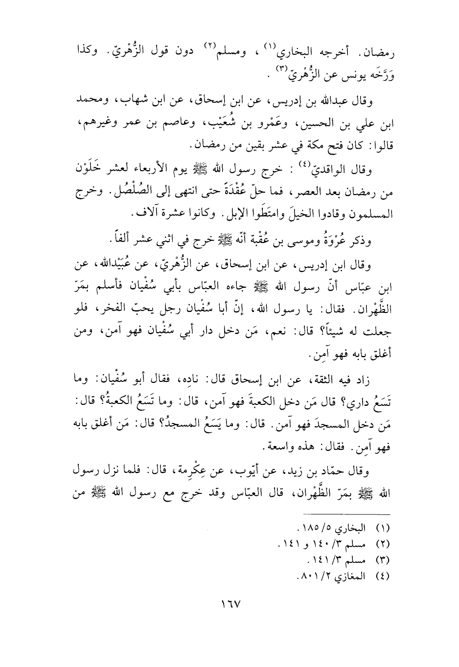 زاد فيه الثقة، عن ابن إسحاق قال: ناده، فقال أبو سفيان: وما تسع داري؟ قال: "من دخل الكعبة فهو آمن"، قال: وما تسع الكعبة؟ قال: "من دخل المسجد فهو آمن". قال: وما يسع المسجد؟ قال: "من أغلق بابه فهو آمن". فقال: هذه واسعة.