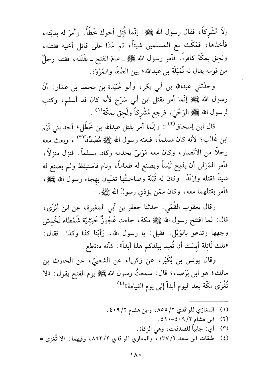 وحدثني عبد الله بن أبي بكر، وأبو عبيدة بن محمد بن عمار: أن رسول الله صلى الله عليه وسلم إنما أمر بقتل ابن أبي سرح؛ لأنه كان قد أسلم، وكتب لرسول الله صلى الله عليه وسلم الوحي، فرجع مشركا ولحق بمكة.