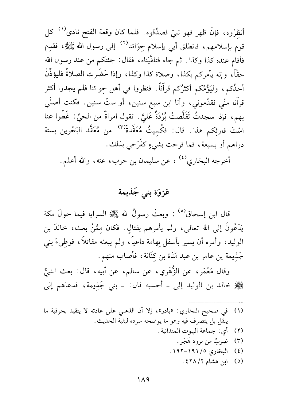 قال ابن إسحاق: وبعث رسول الله صلى الله عليه وسلم السرايا فيما حول مكة يدعوم إلى الله -تعالى- ولم يأمرهم بقتال. فكان ممن بعث، خالد بن الوليد، وأمره أن يسير بأسفل تهامة داعيا، ولم يبعثه مقاتلا، فوطئ بني جذيمة بن عامر بن عبد مناة بن كنانة، فأصاب منهم.