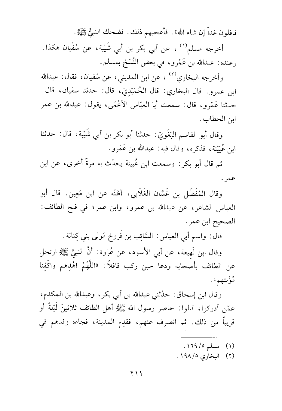 وقال المفضل بن غسان الغلابي، أظنه عن ابن معين. قال أبو العباس الشاعر، عن عبد الله بن عمرو، وابن عمر؛ في فتح الطائف: الصحيح ابن عمر.