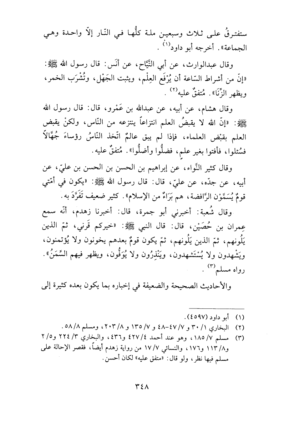 ستفترق على ثلاث وسبعين ملة كلها في النار إلا واحدة وهي الجماعة". أخرجه أبو داود.
