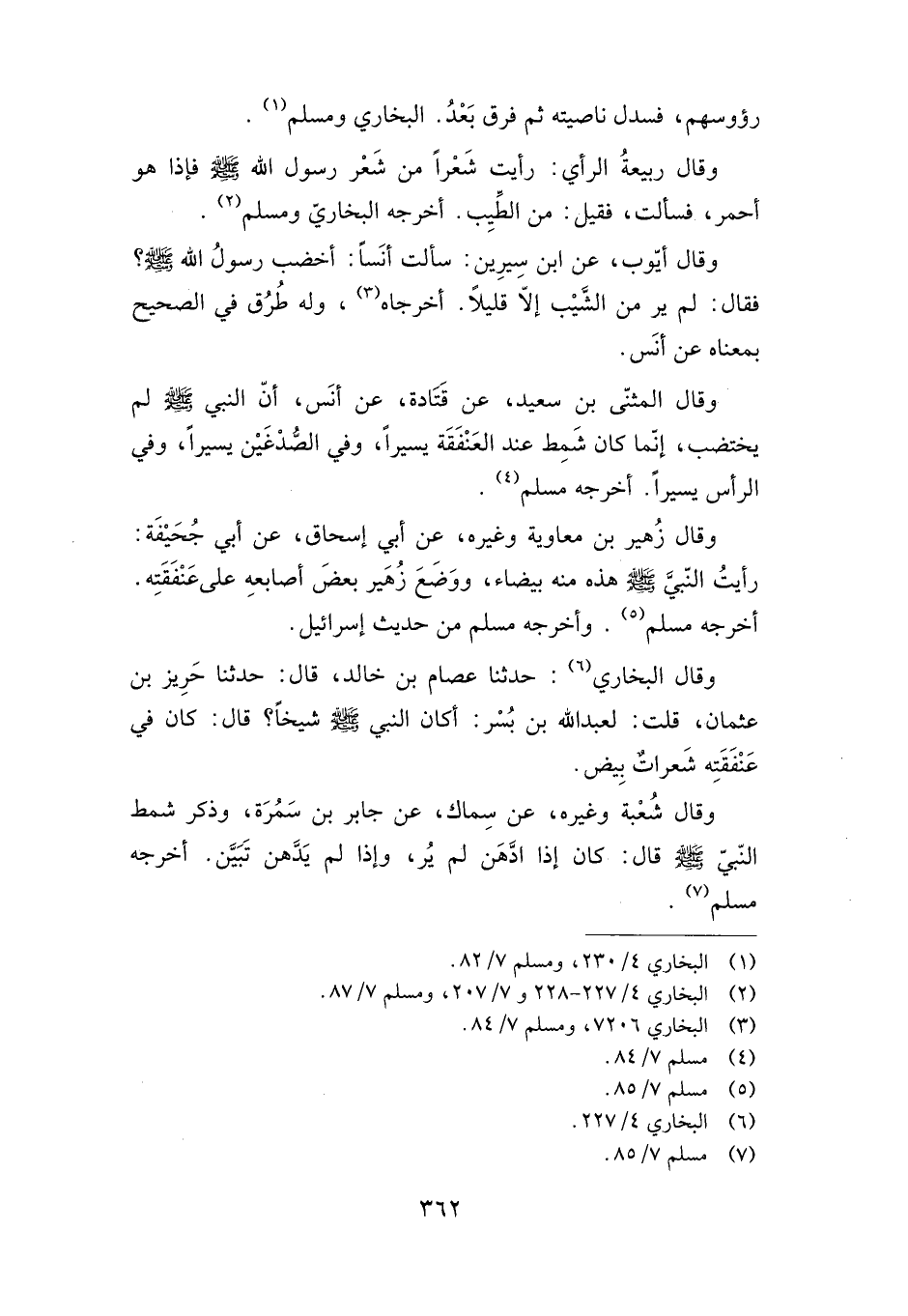 وقال شعبة وغيره، عن سماك، عن جابر بن سمرة، وذكر شمط النبي صلى الله عليه وسلم قال: كان إذا ادهن لم ير، وإذا لم يدهن تبين. أخرجه مسلم.